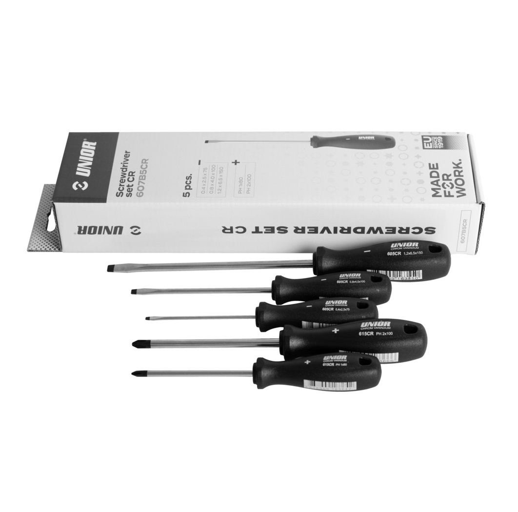 UNIOR Odvijači pljosnati i krstasti CR u garnituri, 5 kom