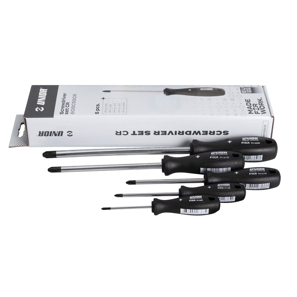 UNIOR Odvijači krstasti CR u garnituri, 5 kom
