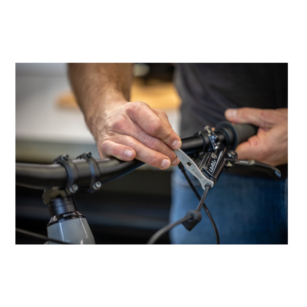 Ovaj dvostrani ključ sadrži otvore veličine 7 i 8 mm, sa svake strane, što ga čini zgodnim za velik broj kočionih sistema. Petostrani krajevi drže maticu sa pet strana, raspoređujući silu ravnomerno i sprečavajući oštećenja mekanih matica. Ovaj ključ je posebno dizajniran za upotrebu na hidrauličnim kočionim sistemima, uključujući tu i “olive” hidraulična creva, kao i matice za odzračivanje sistema. Mali profil alata omogućava pristup teže dostupnim spojevima. Dodatno, otvoreni okasti ključ može se koristiti samostalno, ili u kombinaciji sa moment ključem preko ugrađenog kvadratnog profila veličine 1/4″.