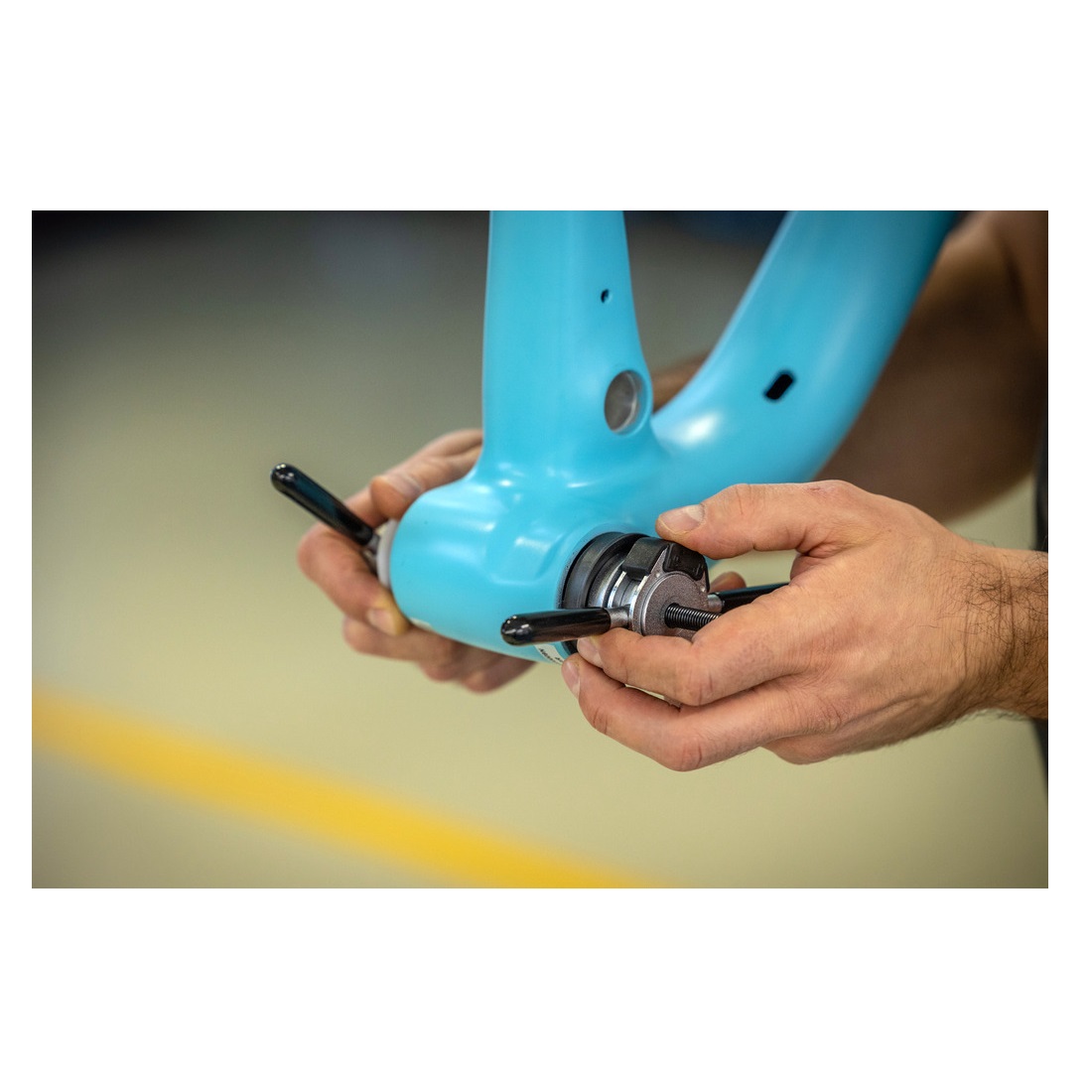 Pogonski ležajevi koji se nabijaju (eng. press-fit) zahtevaju precizno naleganje kako bi pružili dugotrajne performanse bez škripanja. Dolazi sa setom presa (adaptera) za sve uobičajene standarde ležajeva bicikala, spakovan tako da olakša upotrebu i ubrza rad.